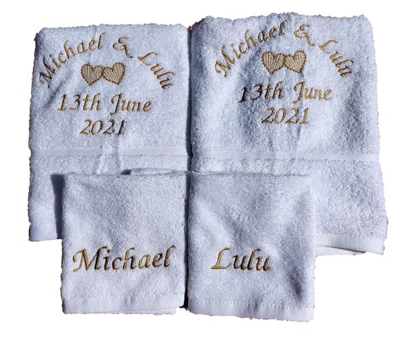 Ultimately, what makes monogrammed towels such an enduring matching gift for couples is what they represent at their core: home. Image courtesy of Etsy.