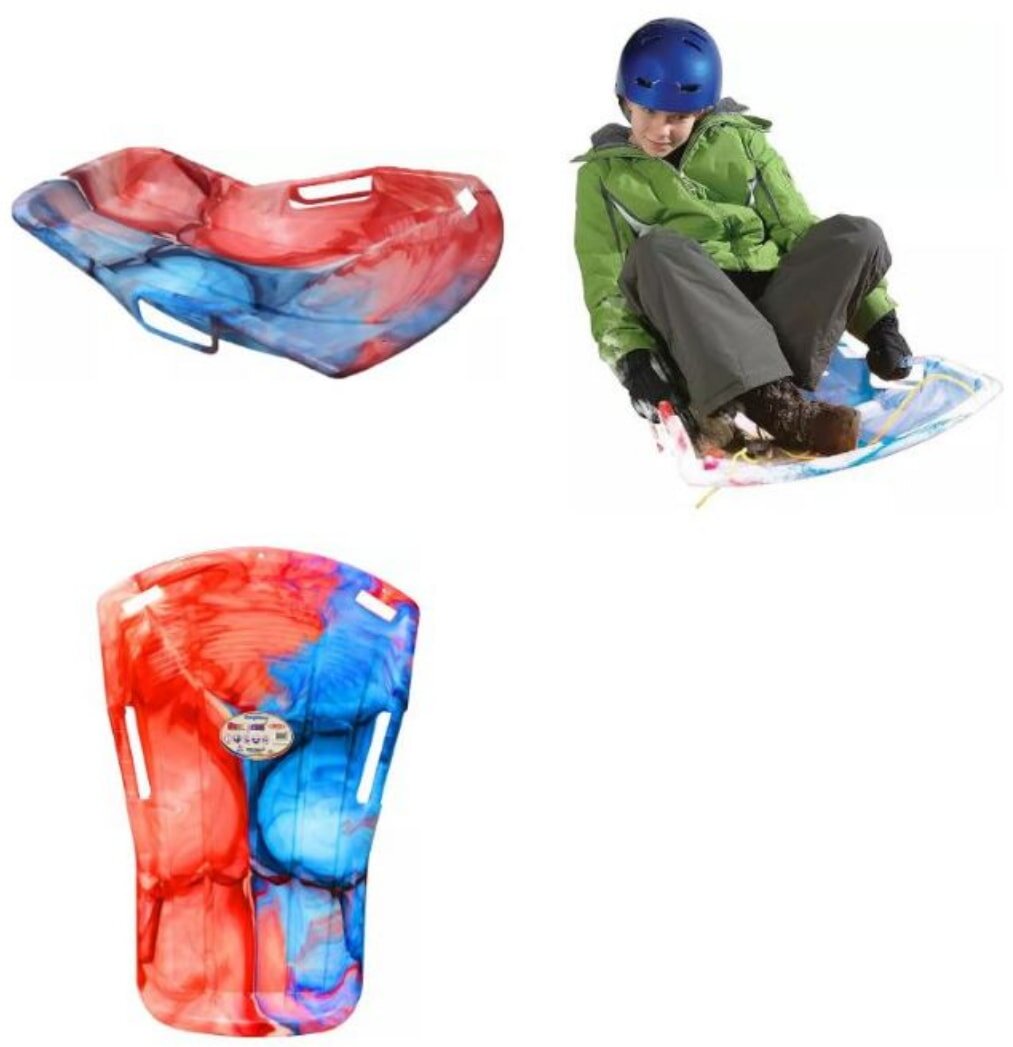 This Sno-Print sled is blue/red and it has a length of 37” inches. Its color makes it easily visible in the snow, which provides safety for your son. The sled is also easy to pull with the assistance of the tow rope. The large open handles, gripper rib patterned seat, and forward heal-lock design provide additional safety while sledding down long hills.