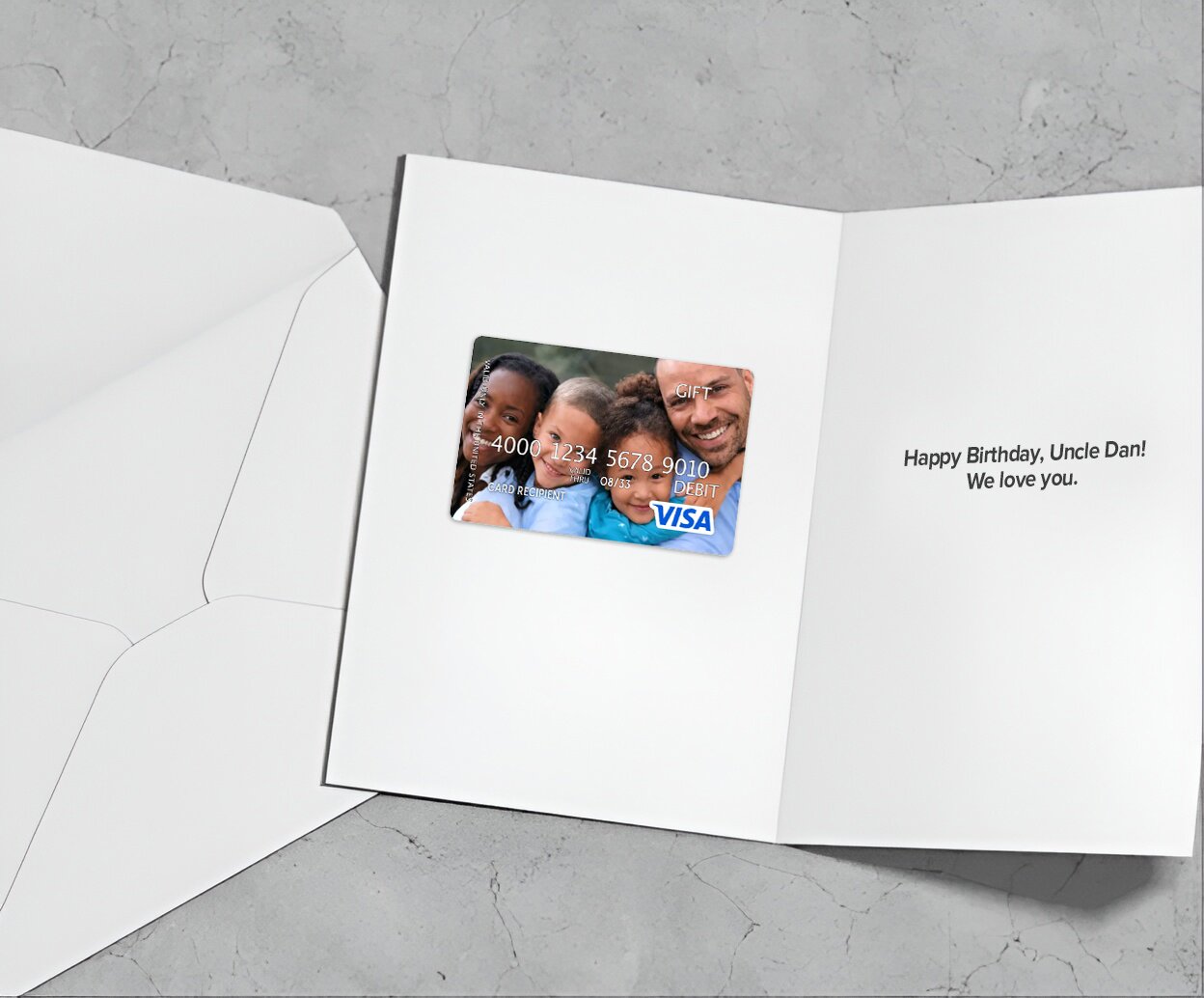 We partner with Visa and Mastercard to offer custom gift cards with photos uploaded by the user. Each photo is reviewed by a member of our team for strict adherence to image guidelines provided by Visa and Mastercard. Unfortunately any uploaded images that contain one or more of the prohibited guidelines has to be rejected.